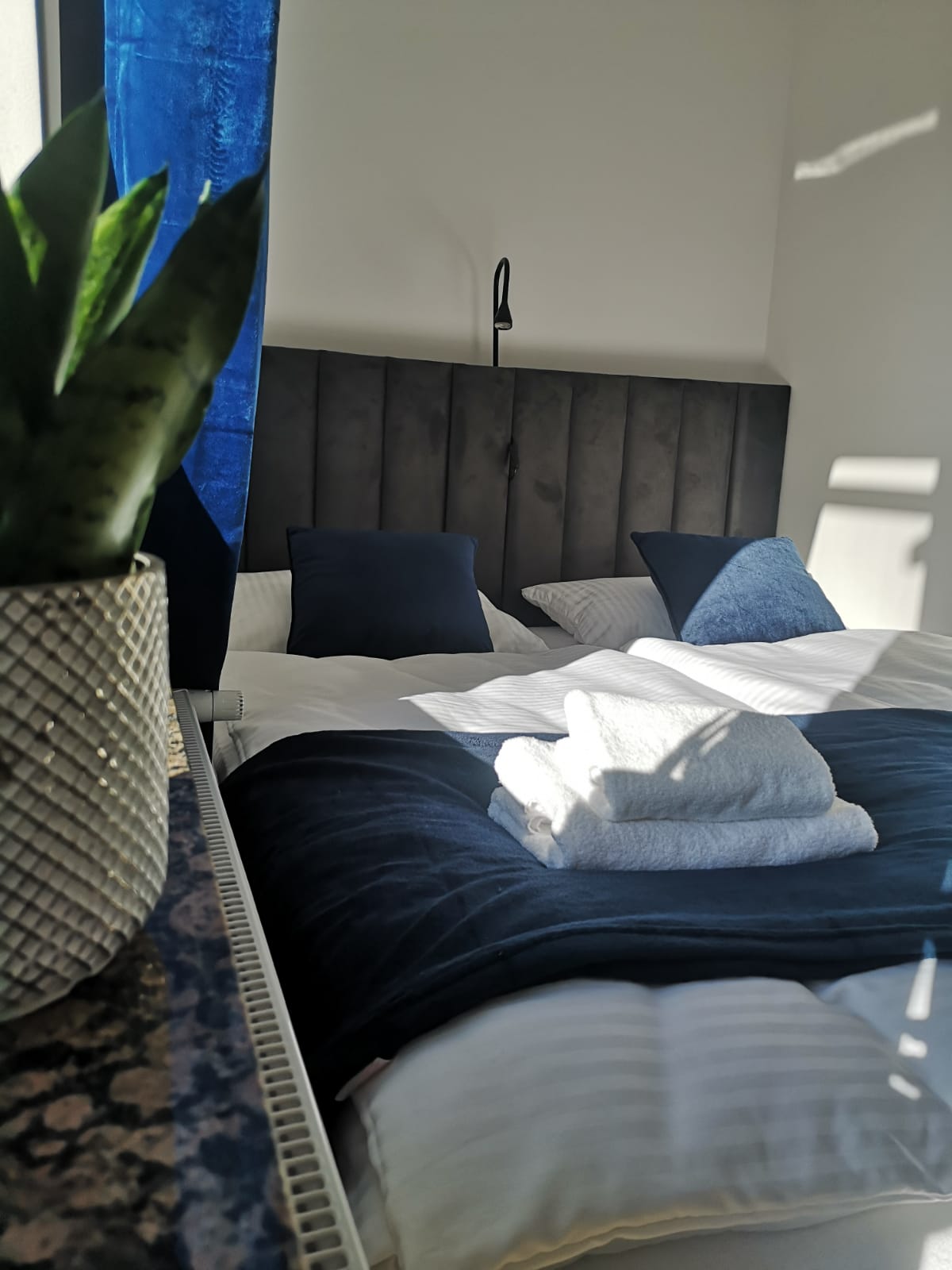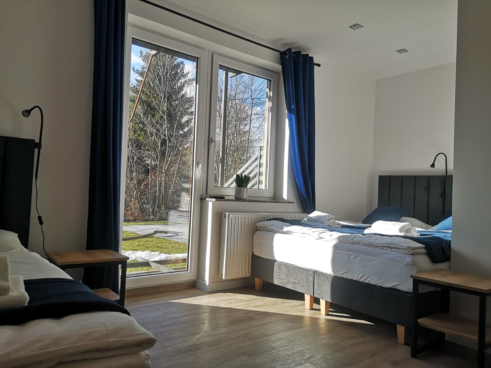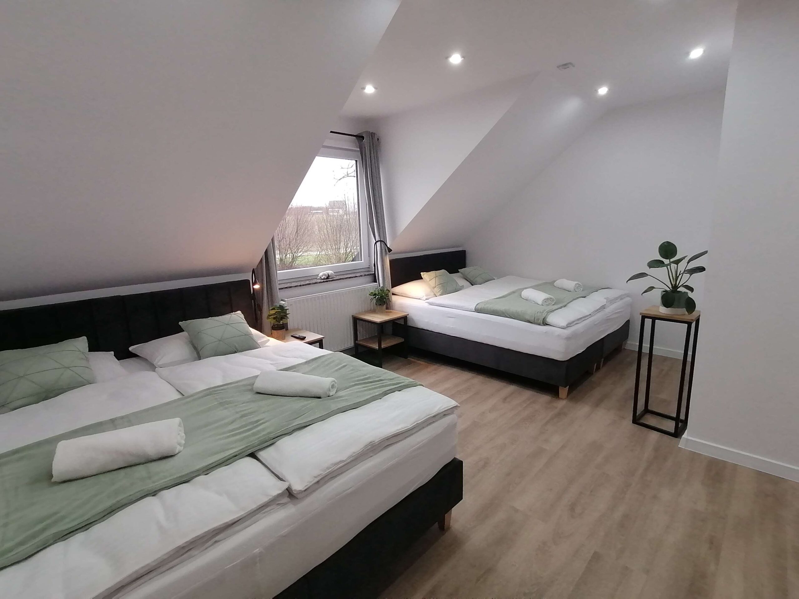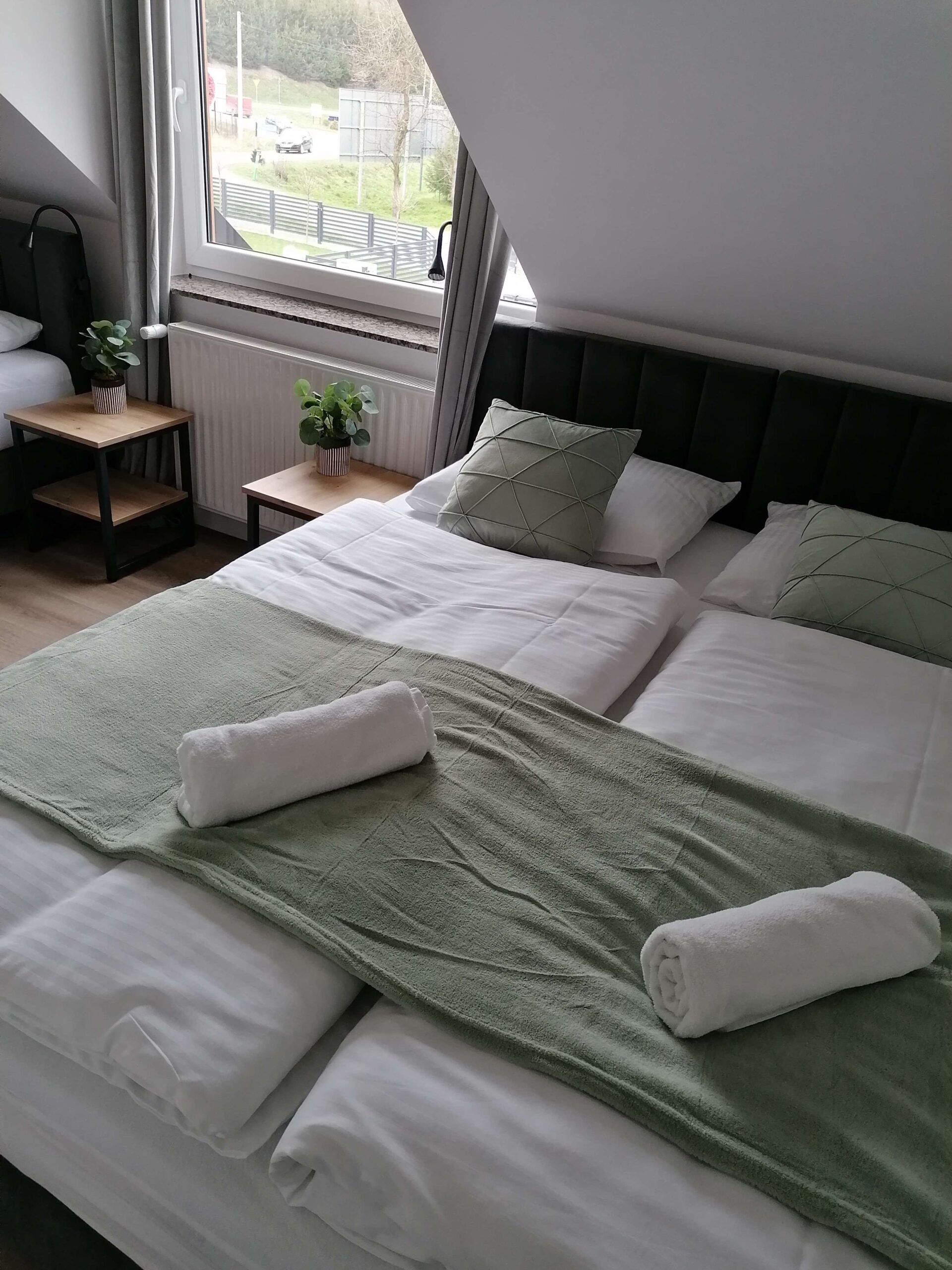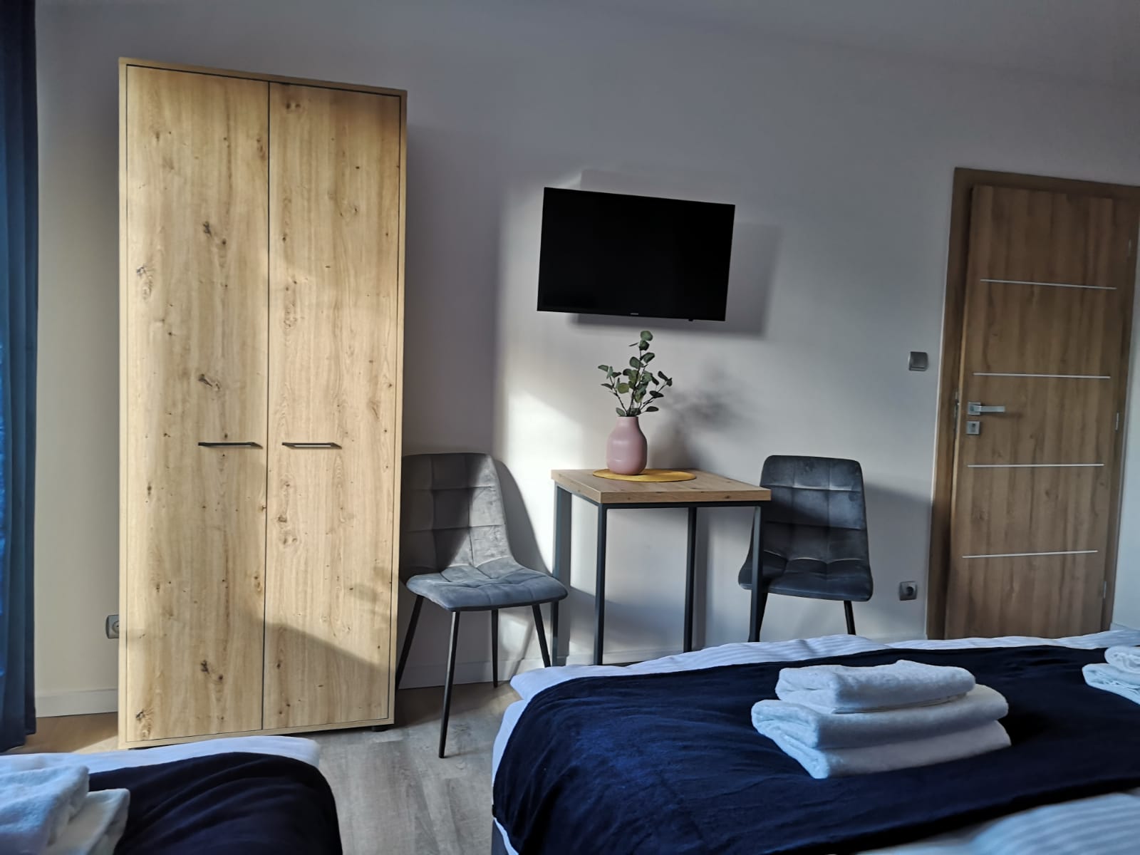 Sypialnie 4 osobową z łazienką wyposażoną w TV, WI-FI oraz ręczniki.